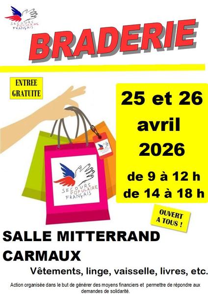 Braderie caritative de l'antenne de Carmaux du Secours Populaire Français ouverte à tous et entrée gratuite.